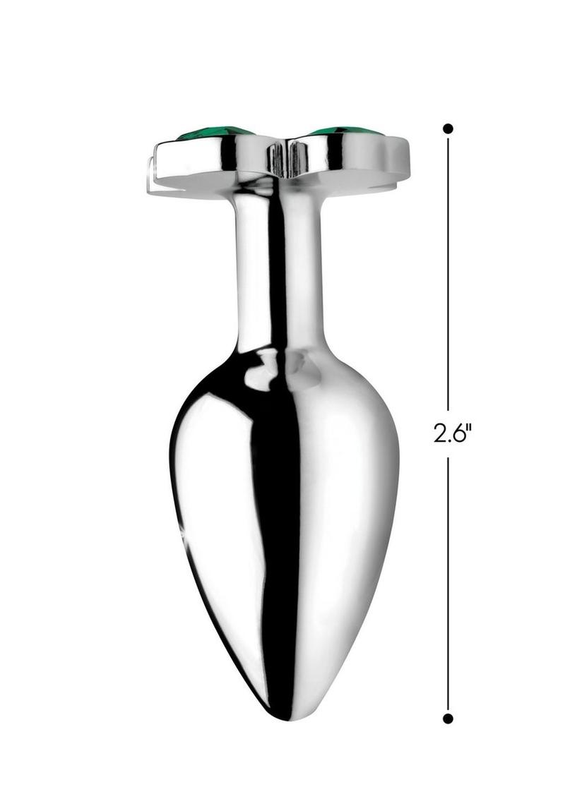 Make that booty get lucky with this hefty metal anal plug with a clover jewel design at the base! Pop this lucky charm in your pot-o-gold to appreciate the comfortable weight inside your body, thanks to the nickel-free aluminum alloy material. Great for temperature play, you can warm it or cool it in water before insertion. The attractive shape of the base will surprise your partner when you bend over. Shake that shamrock! Use with any lubricant of your choosing and clean after use with mild soap or toy cleaner.