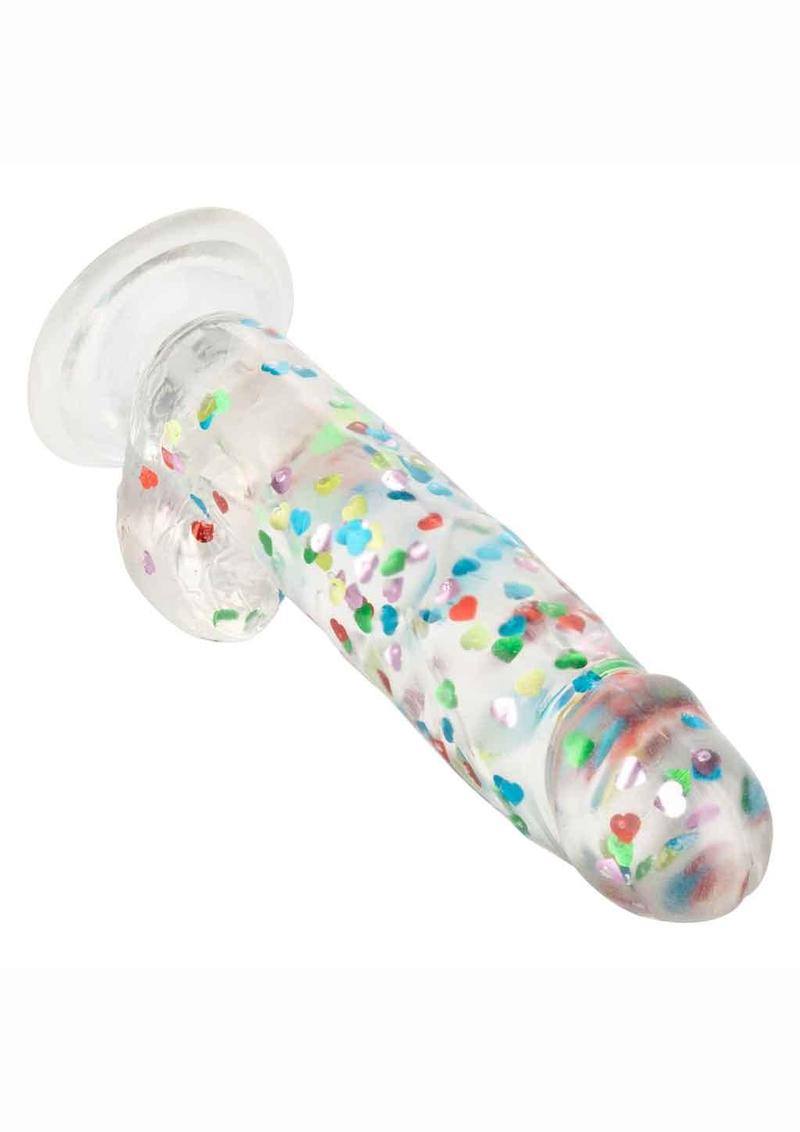 The Naughty Bits I Love Dick Heart Filled Dong is one heart-on you will love! The playful dong is crafted with a like-feel feel, suction cup base, and sparkling heart confetti design.