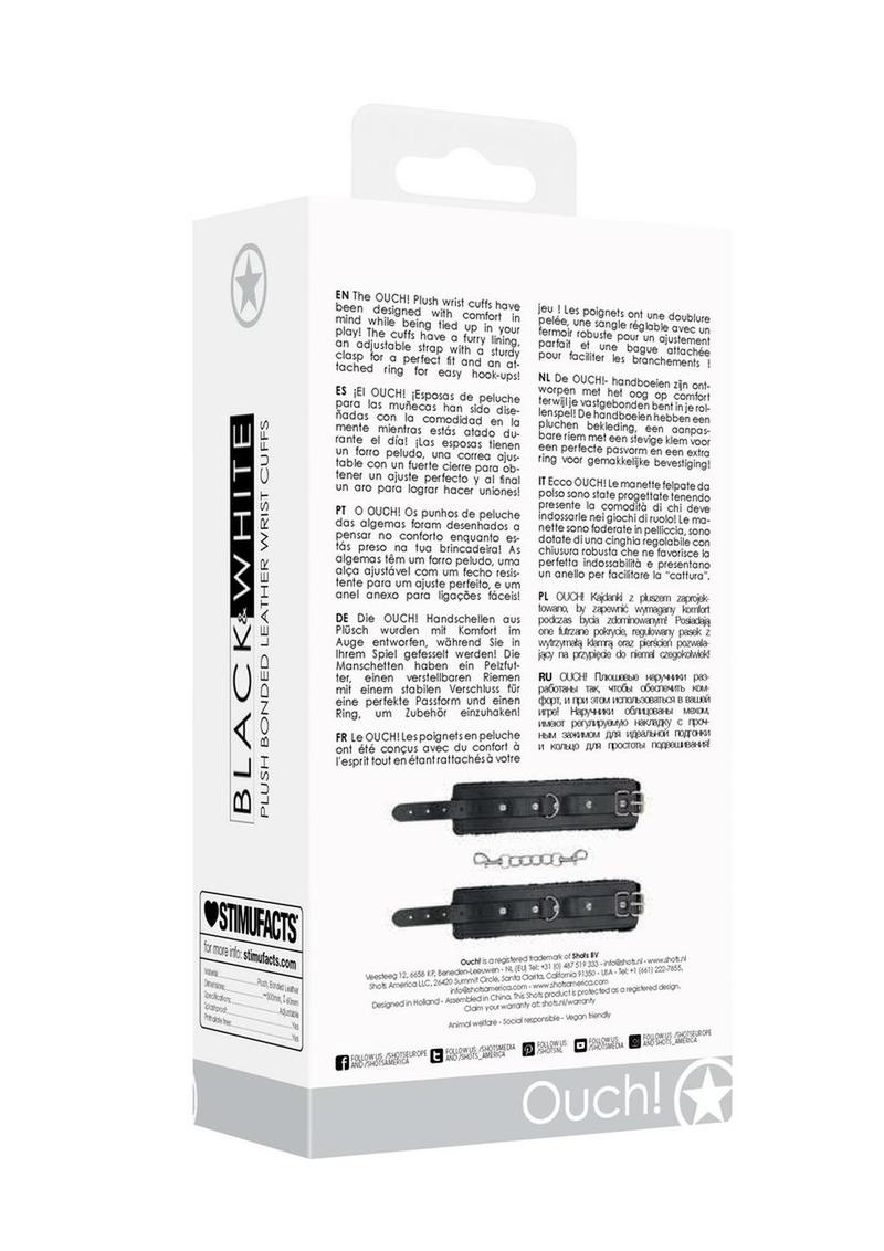 The OUCH! Plush wrist cuffs have been designed with comfort in mind while being tied up in your play! The cuffs have a furry lining, an adjustable strap with a sturdy clasp for a perfect fit and an attached ring for easy hook-ups!