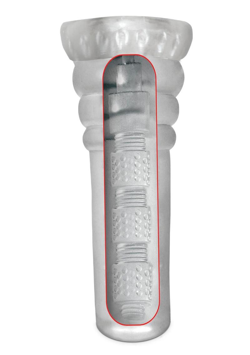 The accordion-like design sticks to your pelvic area and creates a powerful vacuum action, simulating the most intense fuckhole ever imagined. Best of all, its transparent so you can watch your cock swell with power and grow bigger than ever before!