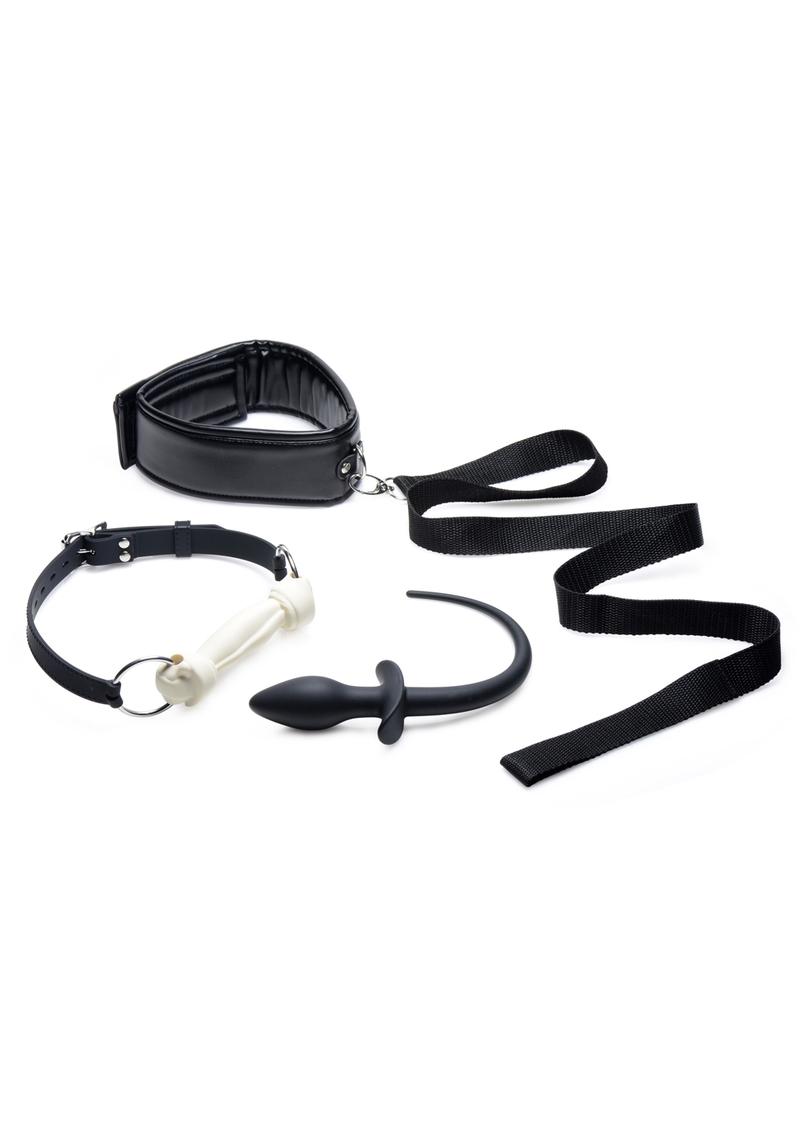 Everything you need to let out your inner puppy is included in this Puppy Play Set! This versatile set contains a silicone bone gag, flexible tail butt plug, and cushioned adjustable collar b  use every item at once for a wild romp or use each item on its own for a more subtle way to puppy play.